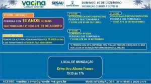 Campo Grande vacina as três doses apenas no drive do Albano Franco neste domingo