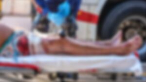 Homem correu mesmo ferido e caiu do outro lado da rua
