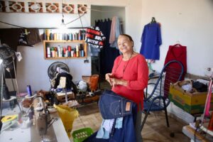 Costureira inova no Guanandi com ateliê industrial em casa, mas não faz roupas: ‘Só conserto’