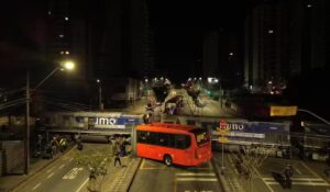VÍDEO: Ônibus biarticulado parte ao meio após colidir com trem e deixa 11 feridos em Curitiba