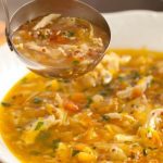 Canja de galinha é uma sopa com frango, arroz e legumes
