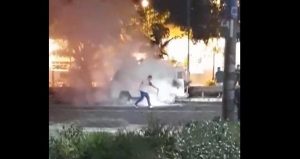 VÍDEO: Kombi pega fogo na Avenida Prefeito Heráclito