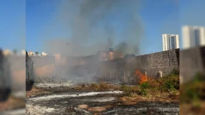 VÍDEO: Fumaça de incêndio em terreno atrapalha visão de motoristas na Av. Bandeirantes
