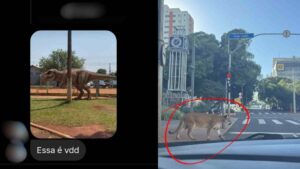 Dinossauro em praça e onça na Afonso Pena: casos de predadores na Capital viram memes nas redes