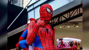 Vendedor trabalha como homem-aranha e Dino, enfrentando calor e roupas que escondem todo o corpo dele. Tudo para realizar mais um de seus sonhos...