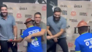 Fã de Henrique & Juliano viraliza ao apalpar cantores em camarim: ‘Encheu a mão’