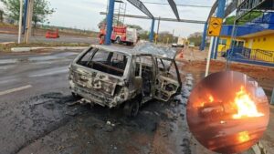 VÍDEO: Revoltados, jovens ateiam fogo em carro apreendido pela PRF em Ivinhema