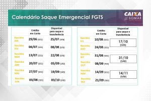 Após o anúncio do pagamento dos R$ 1.045 do saque emergencial do FGTS, a Caixa divulgou o calendário de pagamento. Os saques em conta começa a partir do dia 29 de junho para nascidos em janeiro, mas calendários de saque em dinheiro seguem até novembro para nascidos em dezembro. O dinheiro vai cair automaticamente nas […]