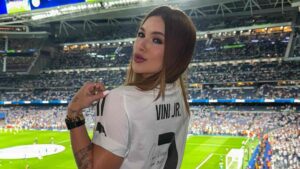 Assumiu? Virginia Fonseca acompanha Vini Jr. em jogo do Real Madrid na Espanha