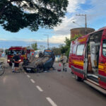Motorista perde controle, bate em árvore e capota carro na 14 de Julho em Campo Grande