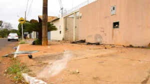 Motorista não respeita ‘Pare’ e carros invadem obra na antiga rodoviária de Campo Grande