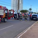 Motorista fica presa em carro tombado após batida entre quatro veículos em Campo Grande