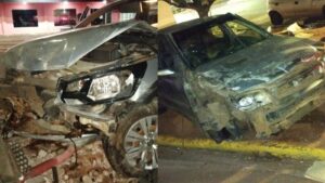 Saveiro colide em muro e Pálio bate em poste próximo a shopping na Capital
