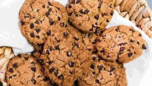 Receitinha de cookie saudável quase não suja louça e permite gotas de chocolate por cima