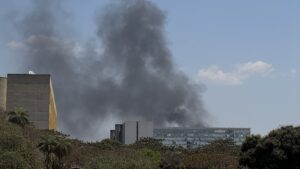 Incêndio atinge banheiros químicos na Esplanada dos Ministérios