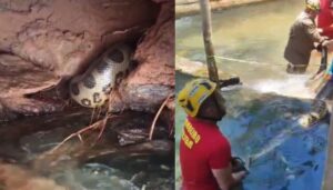 Bombeiros resgatam sucuri de 5,5 metros em área de hotel em Rio Quente