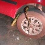 VÍDEO: bombeiros retiram roda de carro para fazer ‘resgate’ de sucuri de 2 metros