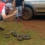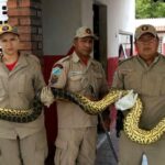 Bombeiros salvam cachorro ‘enrolado’ por cobra de quatro metros