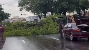 Árvore de grande porte cai durante chuva e interdita rua 13 de Maio em Campo Grande