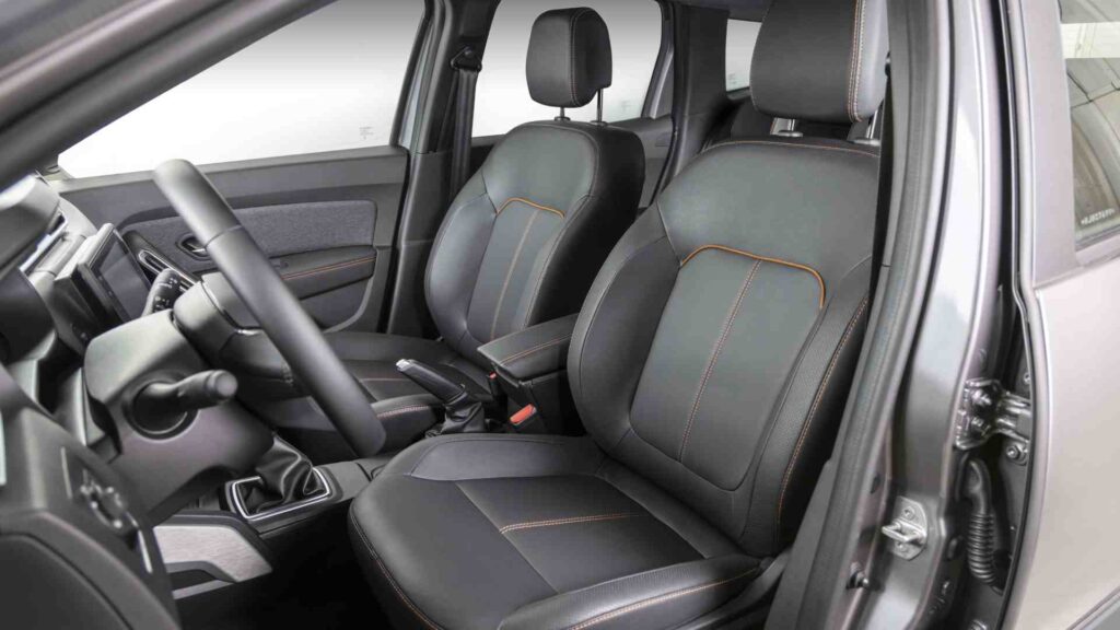 O Duster Iconic Plus 1.3 TCe CVT pode ser equipado com o Pack Outsider, que complementa o visual do SUV com faróis auxiliares no para-choque dianteiro – com molduras na cor Cinza Megalith e novos frisos laterais com detalhes em laranja.